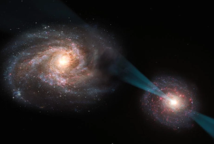These galaxies charge at each other over and over again at speeds of around 500 kilometers per second, landing glancing blows with every pass rather than fully merging. But one galaxy isn’t following the same rules—it’s using a quasar as a weapon.